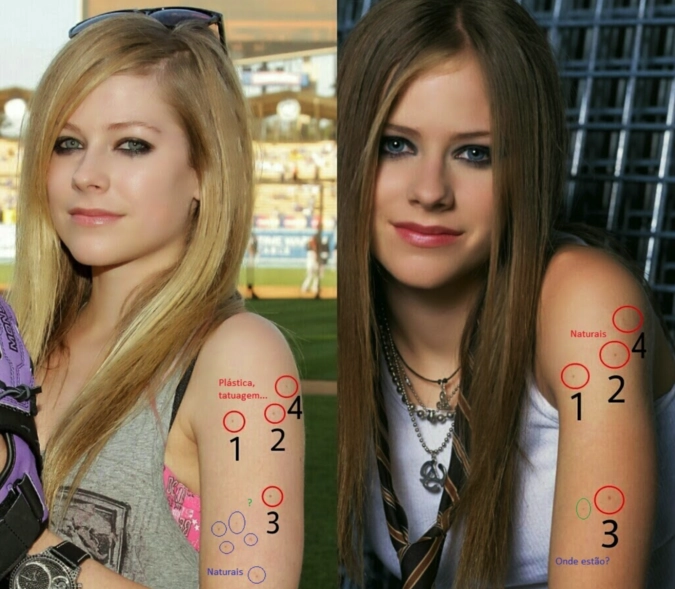 По мнению группы поклонников, снимки помогут «вывести лже-Лавин на чистую воду». Всего опубликовано 12 пунктов, по которым нынешняя звезда эстрады не совпадает с «оригиналом». Фотографии наглядно демонстрируют изменение формы носа девушки и расположения родинок на ее теле. Кроме того, фанаты уверены, что выступающая сегодня на сцене Лавин значительно ниже ростом, чем Лавин 10-летней давности. Почерк певицы также поменялся, утверждают они.