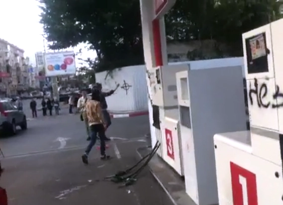 Фашиствующие молодчики в Киеве начали громить заправки «ЛУКОЙЛа»