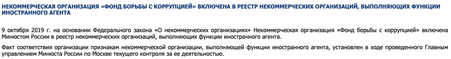 Кроме того, ФБК до сих пор не предоставил в Министерство юстиции РФ документ о персональном составе руководящих органов и целях расходования денежных средств. Такие документы должны предоставляться организацией — иностранным агентом каждое полугодие.