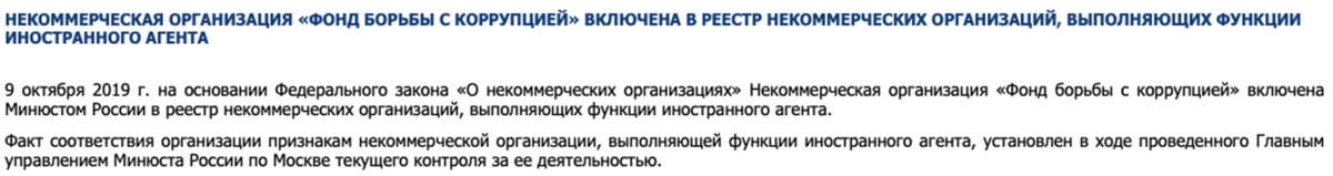 Дело в том, что в 2019 году ФБК был включен в реестр НКО, выполняющих функции иностранного агента. Согласно российскому законодательству, подобные организации не имеют права влиять на результаты избирательной гонки.