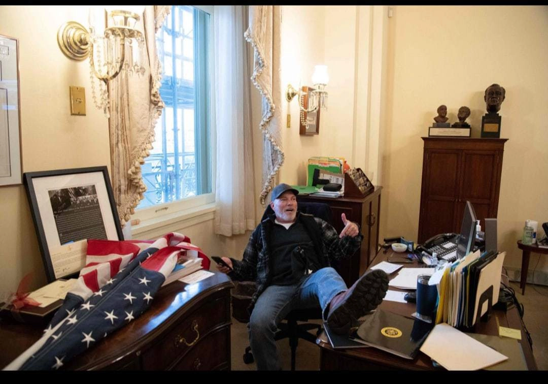 Трампист Ричард Барнетт развалился в кабинете спикера Палаты Представителей. Недавно он был задержан.