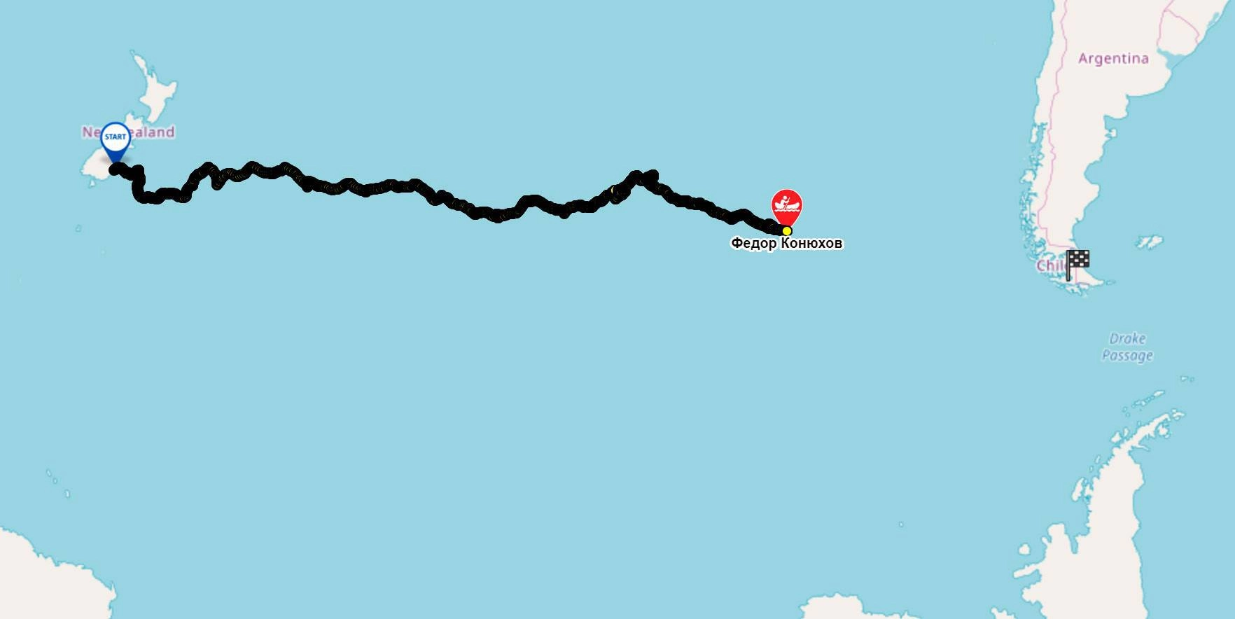 В результате Конюхов преодолел не больше трех четвертей пути и находится здесь (см. карту): а ведь буквально неделю назад сайт путешественника гордился рекордами, которые к тому моменту уже успел установить Федор: