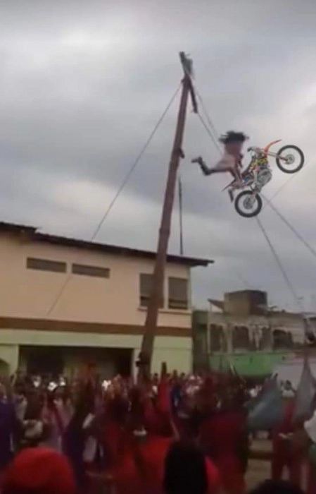 Он рухнул с четырехметрового креста и, испуганно пытаясь для спасения ухватиться за натянутые канаты, угодил в собравшуюся толпу.