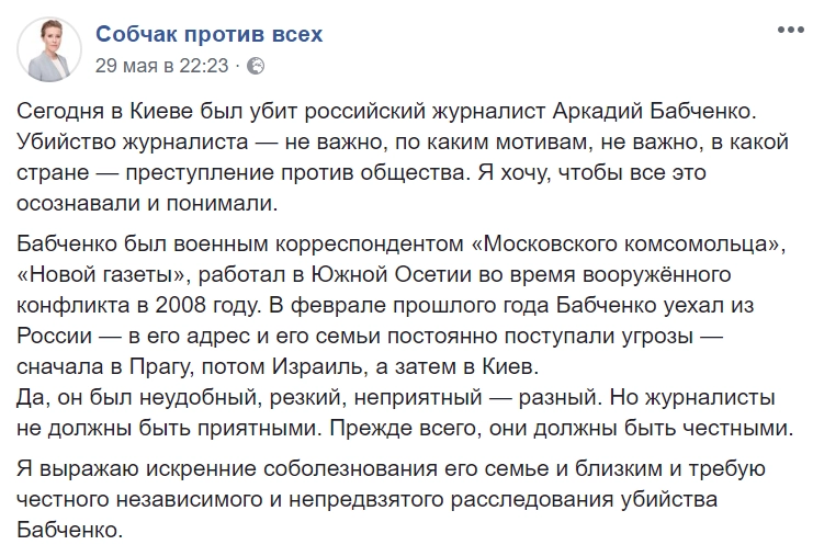 Сам же Аркадий Бабченко заявил, что ему пришлось принять участие в спецоперации СБУ, поскольку его жизни действительно угрожала опасность.