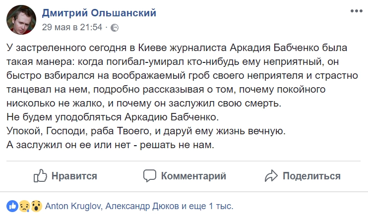 В журналистском сообществе «смерть» Аркадия Бабченко вызвала переполох. Социальные сети пестрили от слов соболезнования и воспоминаний о том, каким человеком был «покойный».