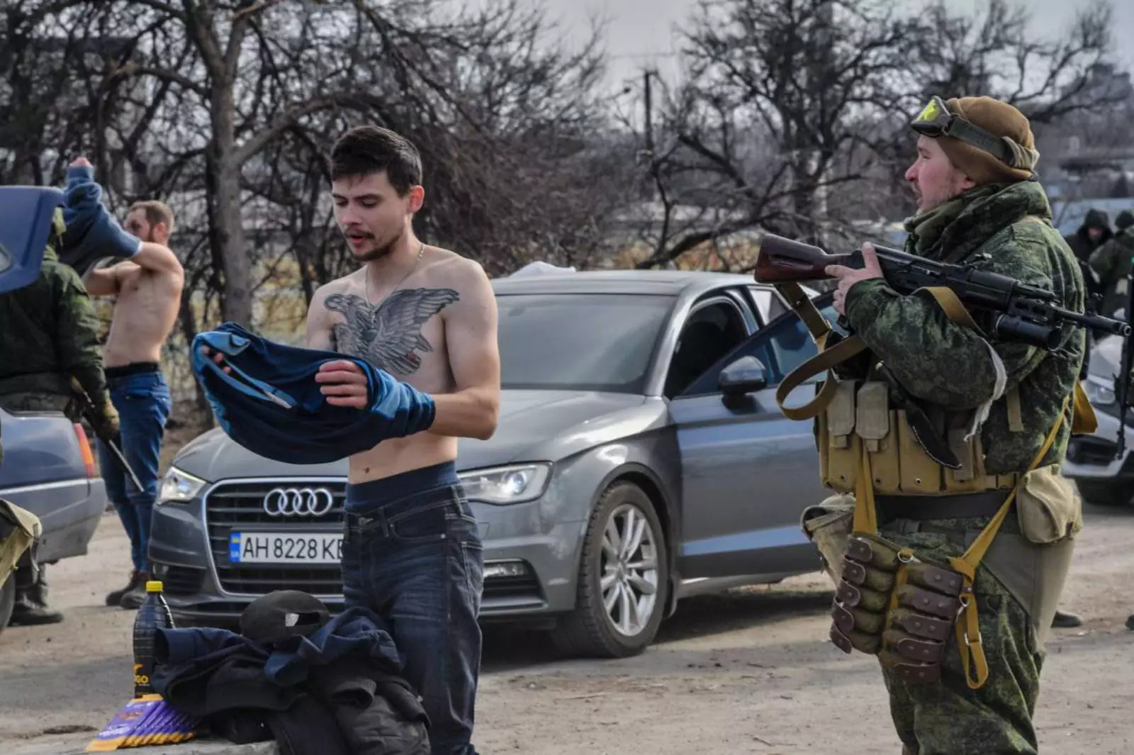 Процедура досмотра, конечно, не из приятных, но она необходима. Сейчас многие боевики из полка украинских националистов «Азов» пытаются выбраться из Мариуполя, переодевшись в гражданское. По наличию определенных наколок можно понять, состоял ли человек в том или ином вооруженном формировании, запрещенном в России и ДНР.