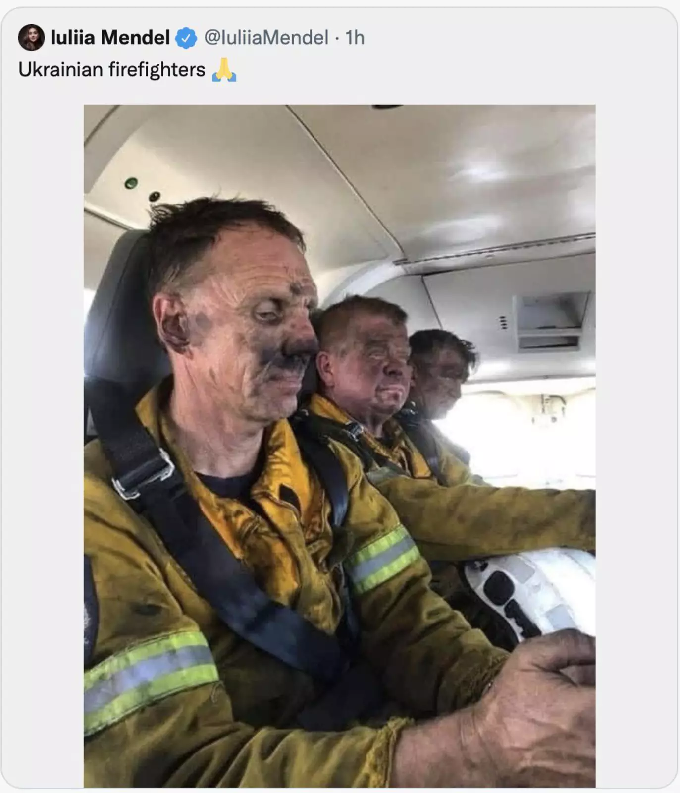 И напоследок - фейк от бывшего пресс-секретаря Офиса президента Украины Юлии Мендель. Она опубликовала в Twitter фотографию с украинскими пожарными, которые на самом деле вовсе не украинские огнеборцы, а австралийские.