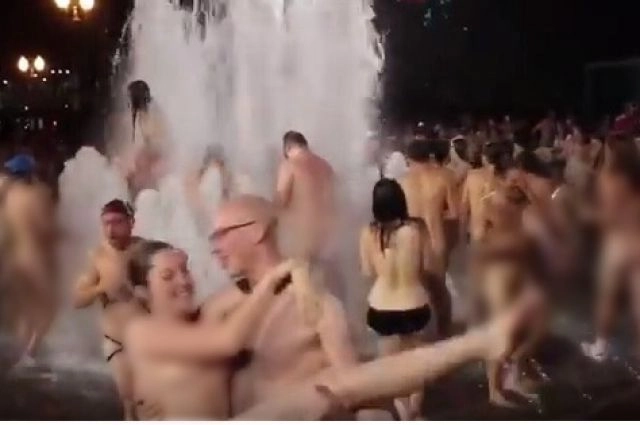 Ряд российских СМИ рассказал о выходке футбольных фанатов в Ростове-на-Дону: болельщики устроили массовую ночную вечеринку в светомузыкальном фонтане. Разумеется, без одежды.