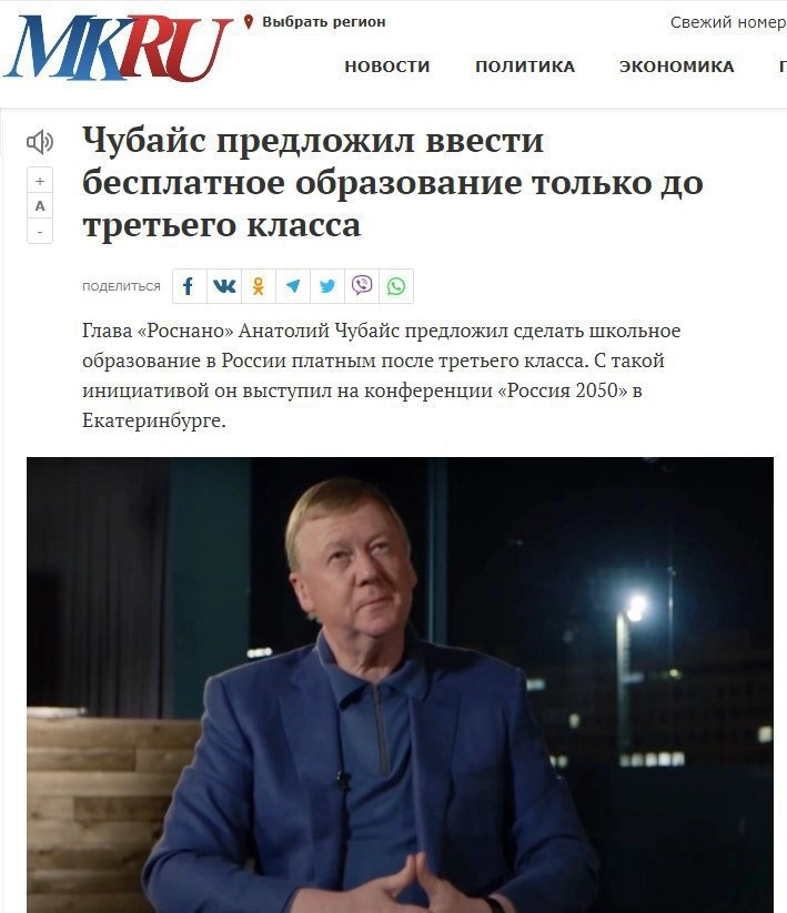 В это сложно поверить, но до сих пор находятся СМИ, которые относятся к «инфоповодам» серьезно. На этой неделе отметился «Московский комсомолец», который принял за чистую монету ироничную историю об инициативе Анатолия Чубайса в области образования.