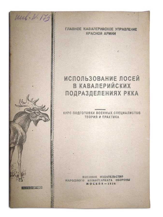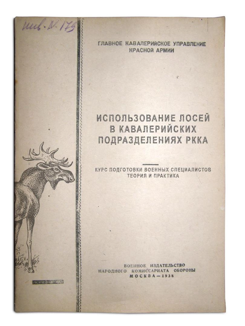 Пособие «Использование лосей в кавалерийских подразделениях РККА. Курс подготовки военных специалистов. Теория и практика» (М., Воениздат наркомата обороны, 1938) — одна из уникальных книг, которые удалось раздобыть «Популярной механике» в чудом сохранившемся архиве Михаила Глухова, директора спецпитомника, где готовили боевых лосей.