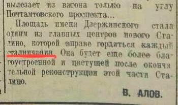 В своем Facebook он также опубликовал фрагмент публикации в газете «Сталинский рабочий» за 1934 год, посвященной площади имени Дзержинского: