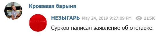 И напоследок — еще одно сообщение о кадровых перестановках в органах власти. Накануне журналистка Ксения Собчак разместила в своем telegram-канале «Кровавая барыня» информацию, взятую с канала «НЕЗЫГАРЬ», о грядущей отставке помощника президента Владислава Суркова.