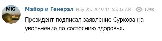 Масла в огонь добавили авторы telegram-канала «Майор и генерал». Они заявили о том, что Сурков попросился в отставку по состоянию здоровья.