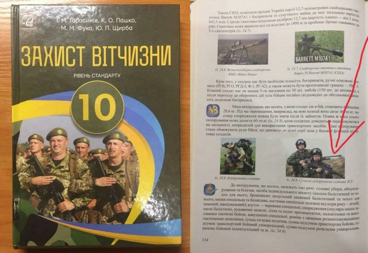У украинских десятиклассников есть предмет «Защита Отчизны». Школьники изучают основы современного военного дела, узнают нюансы вооружения украинской армии и экипировки солдат. Учебник выглядит стильно и красочно — в нем полно фотографий. Однако, как выяснил политолог Владимир Корнилов, авторы учебника «нахватали» первых попавшихся снимков из первой страницы поисковой выдачи. Без «зрады» не обошлось.