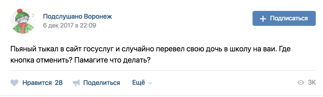 Чудные дела творятся в Воронеже: неизвестный житель столицы Черноземья признался в паблике «Подслушано Воронеж» в своем неудачном опыте использования сайта госуслуг.