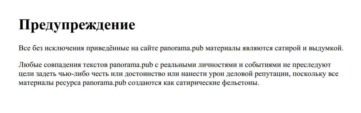 Однако на самом деле новость является шуткой. Ведь «Панорама» — сугубо сатирическое издание, не публикующее ни слова правды. Об этом, кстати, открыто пишется в описании.