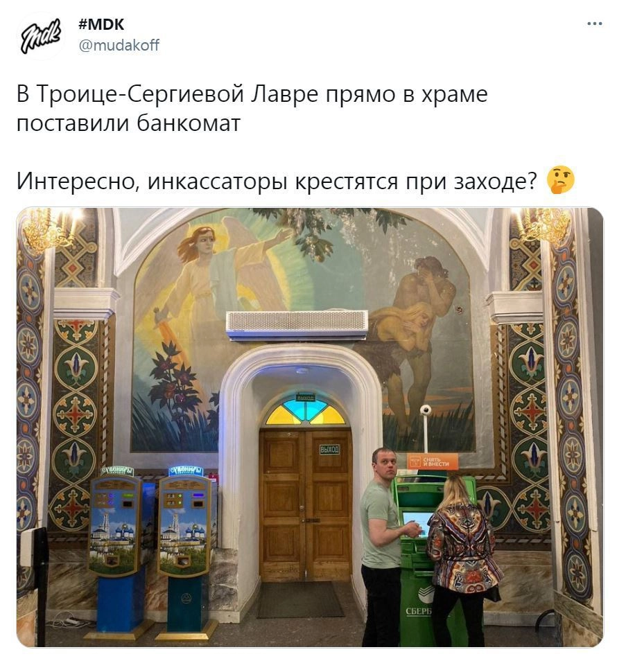 В популярном паблике MDK был опубликован пост о наличии банкомата в Троице-Сергиевой Лавре. Одновременно в Сети появилась информация, что банкоматы якобы уже несколько лет устанавливаются в храмах Воронежской епархии.