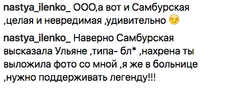 Кому это было нужно? Не месть ли это за «Ревизорро»? Следственный комитет работает. Если выкарабкаюсь, напишу,написала Самбурская, попутно прорекламировав свой браслет на руке.