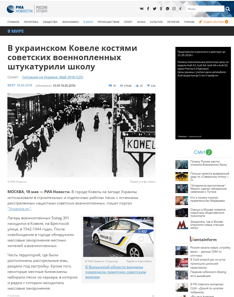 В данном вопросе решил разобраться журналист издания The Insider Юрий Бершидский. И вот, что ему удалось выяснить. Оказывается, ковельские бизнесмены уже давно ведут в окрестностях своего города незаконные разработки песка для строительства. В апреле 2017 года при рытье карьера действительно было обнаружено массовое захоронение. Работы (вопреки утверждениям портала Ukraina.ru) тут же были остановлены, а приехавшие на место специалисты установили, что в братской могиле покоились более 20 тысяч расстрелянных немцами советских военнопленных и евреев из ковельского гетто. Останки местные власти (опять же вопреки утверждениям Ukraina.ru) решили перезахоронить, о чем, кстати, говорилось и на официальном сайте проекта «Объединенная Еврейская Община Украины», а на бизнесменов, занимавшихся незаконными разработками, завели уголовное дело.