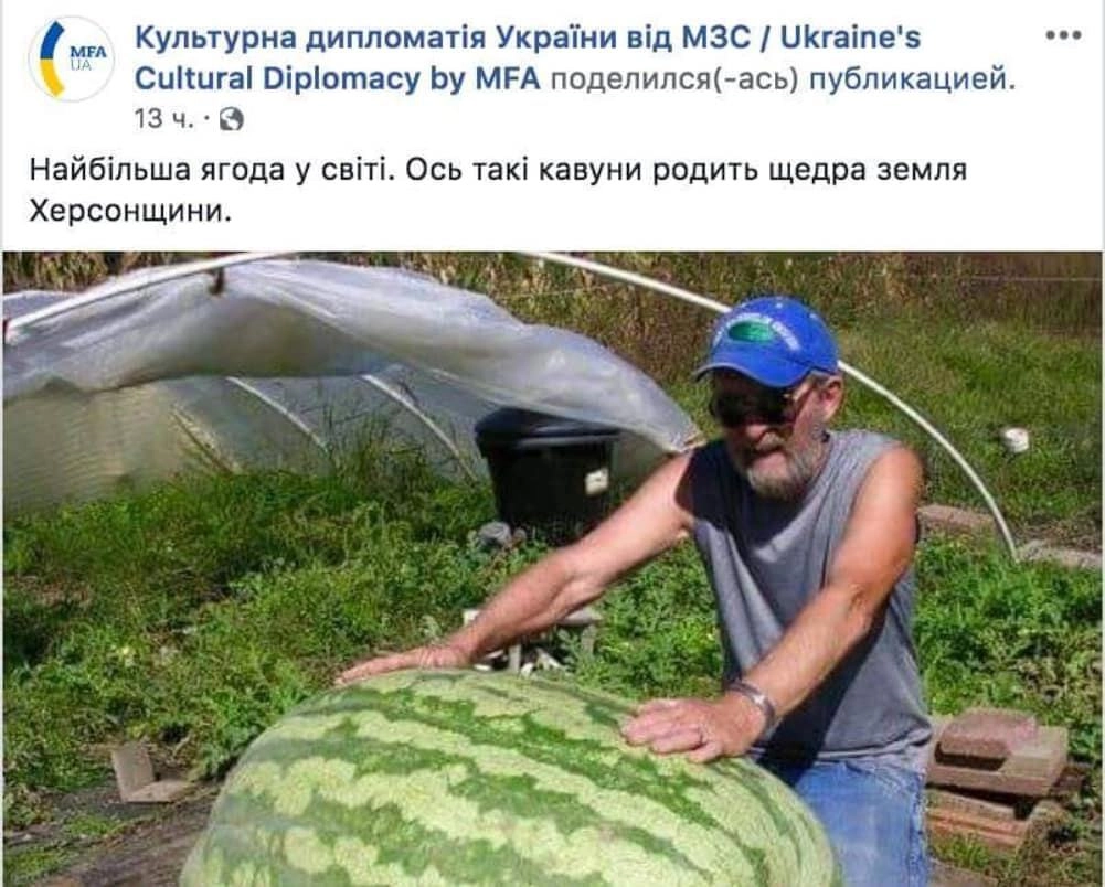 Подделкой оказалась и фотография гигантского «херсонского» арбуза, размещенная в социальных сетях от имени украинского министерства иностранных дел.