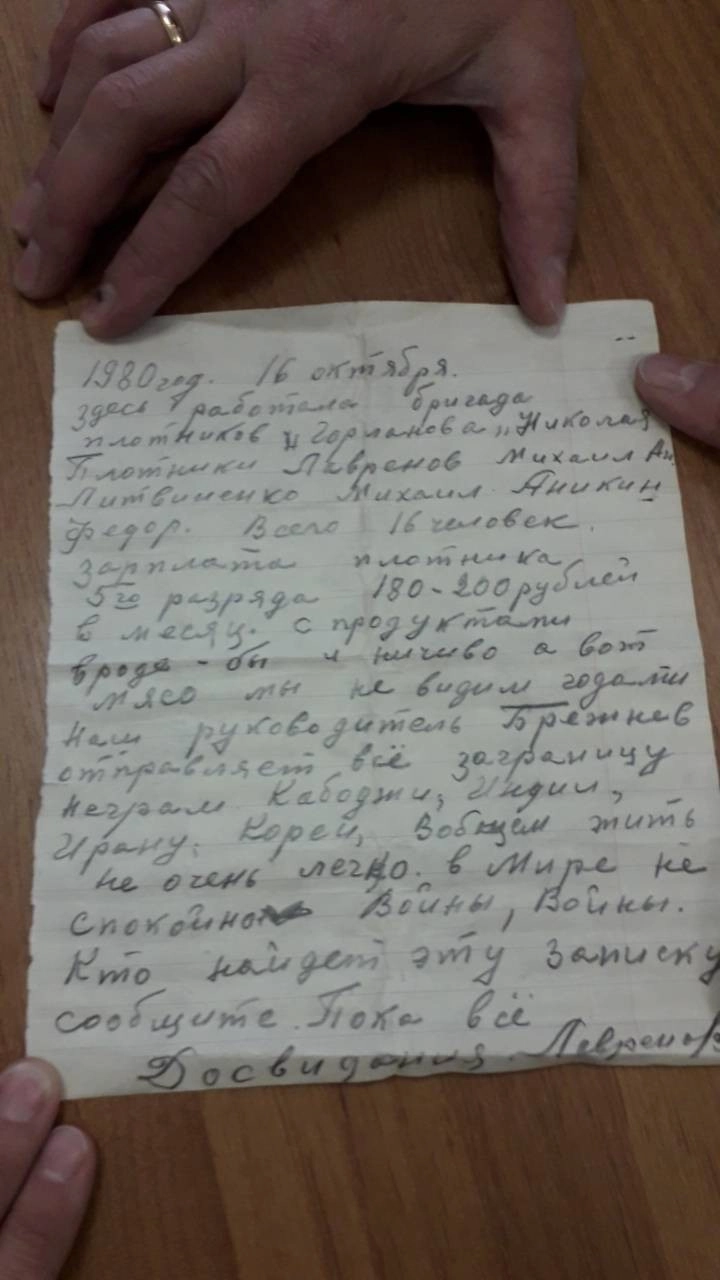 Любопытные вести пришли вчера из Челябинска. Там в одном из родильных домов нашли бутылку из-под водки, в котором находилось послание советских рабочих будущим поколениям.