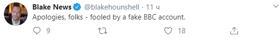 Несмотря на столь явную подделку, многие пользователи ретвитнули сообщение мнимой Би-би-си. Среди них были журналисты New York Times, Politico и других авторитетных изданий. Впрочем, они не преминули сообщить об ошибке, когда проверили источник «сенсации» получше.