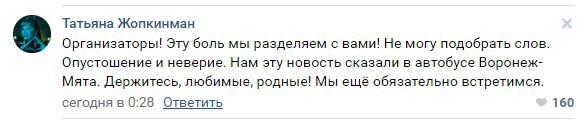 «Неприятно удивил негатив и нытье в соцсетях „Доброфеста“, мол, верните наши деньги. Неужели люди не понимают что окончательно затаптывают организаторов, — написал по этому поводу лидер ска-группы Suspended syndicate heroes Алекса Архиерей. — Вместо поддержки — добивание, но ведь именно эти же самые люди хотели туда поехать и поедут через год (если фестиваль выживет), но вместо саппорта они пытаются растащить по брёвнышку то, что осталось. А вот у „Мяты“, кстати, наоборот поддержка и покупка билетов на будущий фест. Непонятно, неужели такой разный менталитет у посетителей этих фестивалей. „Доброфест“ — вроде панки, неформалы, альтернативщики — должно же быть юнити, френдли саппорт и просто дружеское отношение к любимому событию… не понимаю».