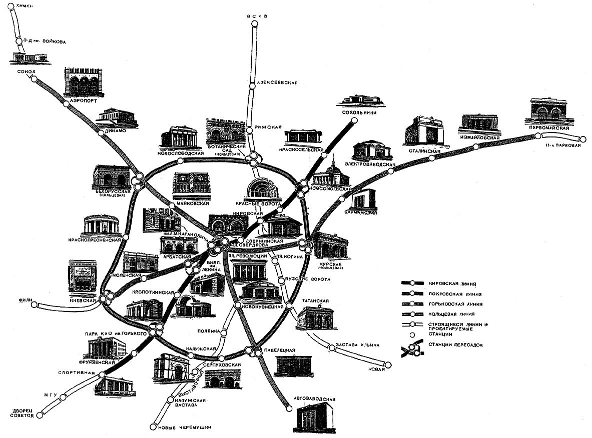 Недавно Russos опубликовал найденную в архиве проектную схему 2-й и 3-й очередей московского метро. Здесь можно рассмотреть соединительную ветвь «Александровский сад» — «Площадь Революции». Точнее схемы мне пока не попадалось, и вообще не попадалось ни одной, где был бы показан перегон от «Площади Революции» до «Арбатской» Арбатско-Покровской линии. Сюда я нанёс голубым цветом примерную трассировку от однопутных участков между «Александровским садом» (внизу схемы) и «Площадью Революции» (слева).