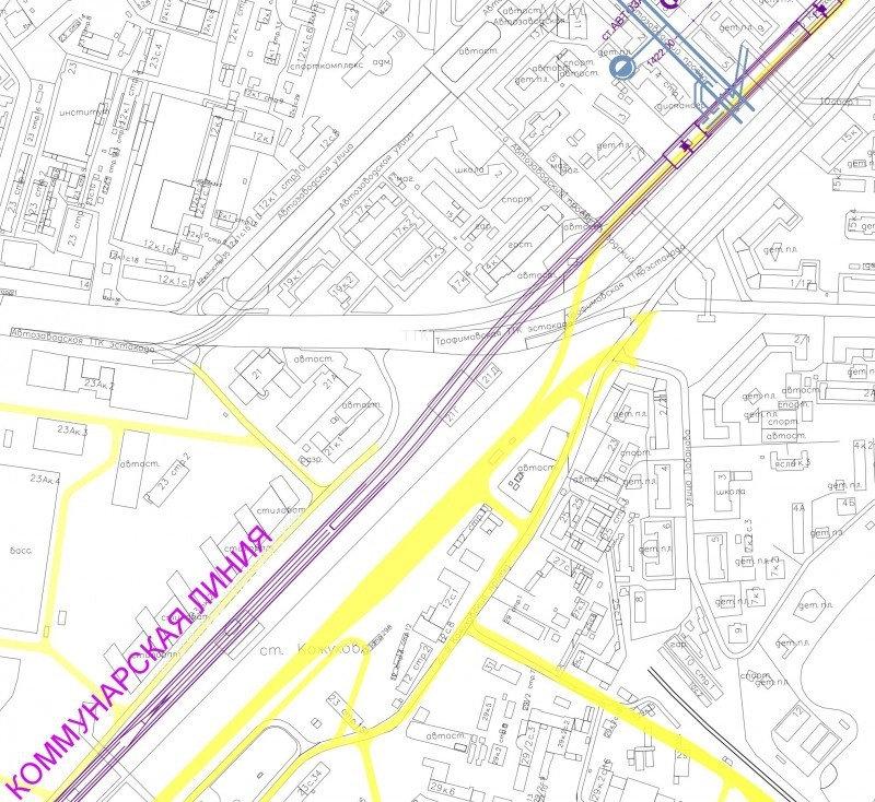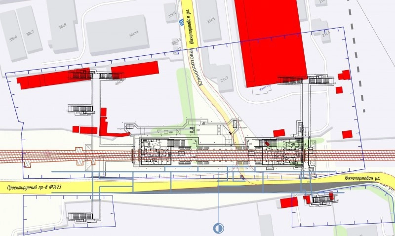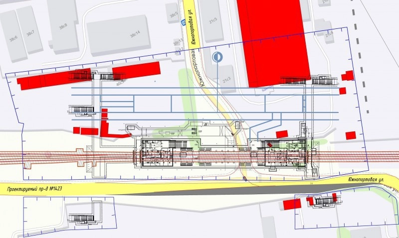 Есть ещё один вариант, если разместить здесь станцию по какой-то причине не выходит. Он был показан для одной из станций связки Троицкой линии с Некрасовской. Отметил станцию голубой стрелкой в правом верхнем углу: