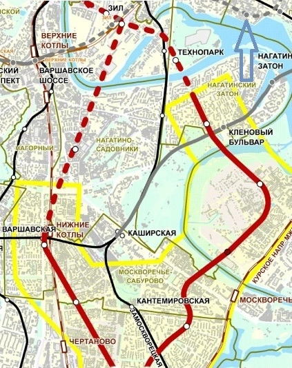 Дальше станция в районе железнодорожной платформы Депо, нормально. Но вот следующая станция — что это? На месте парка имени Артёма Боровика или восточнее, под Перервинским бульваром, без пересадки на Люблинско-Дмитровскую линию — зачем? Проектировщики забыли про задел на «Братиславской»? Далее идёт прекрасная станция под Московским Нефтеперерабатывающим заводом — блеск! Кто-то решил снести такой крупный федеральный объект или его часть, подвергнув смертельному риску строителей и пассажиров?