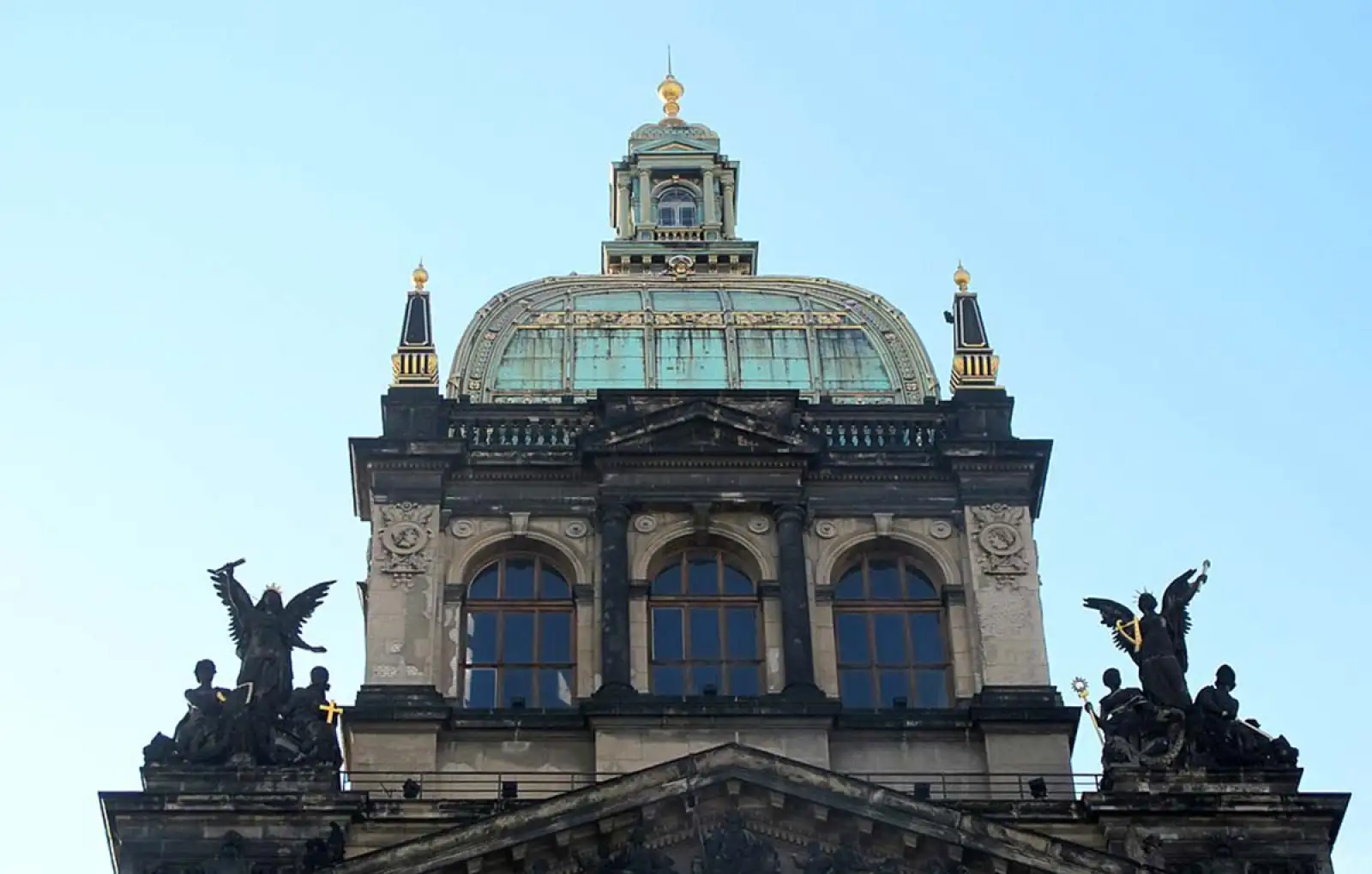 На фасаде Национального музея в Праге, согласно информации, предоставленной изданием Parlamentní listy, временно заменили флаг Украины на рекламный баннер с изображением обезьяны.