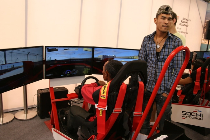 Напомним, что в 2010 году был подписан контракт о проведении этапаФормулы-1 в России в Сочинатрассе в Олимпийском парке. Это событие произойдет спустя100 летпосле последнего Гран-при России, проведенного в дореволюционное время. Первая гонка запланирована на 12 октября 2014 года. В павильоне можно было ознакомиться с макетом трассы и даже почувствовать себя гонщиком.