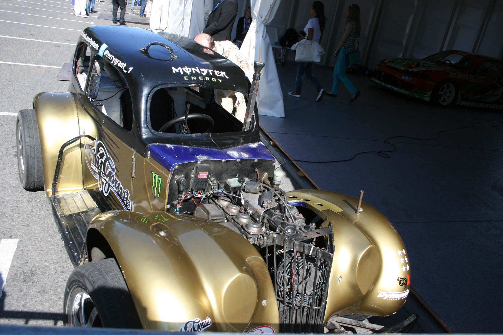 Отдельно стоит отметить каскадерское шоу Терри Гранта. Каждый год этот британский каскадер радует российского зрителя своими трюками, постоянно побивая свои же собственные рекорды. Например, его любимые трюки- это так называемые пончики, когда машина описывает круги задними колесами, в то время как передние стоят на месте. Сам же он в этом время стоит на крыше или бегает вокруг, общаясь с фанатами.