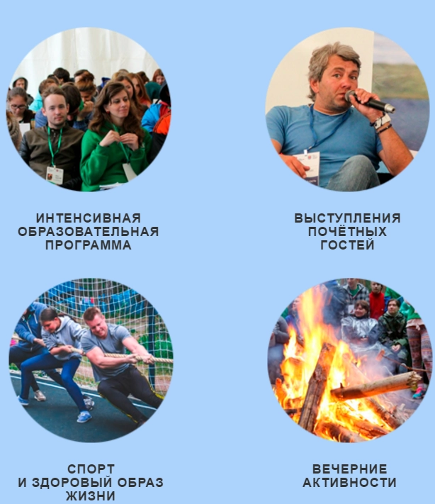 Порядка тысячи молодых предпринимателей, преподавателей, технологов, экологов, журналистов, поэтов, режиссеров, волонтеров и молодых специалистов других отраслей со всей России ждет насыщенная образовательная программа. «Петербургский Диалог», «Творческий Петербург», «Петербург молодых педагогов», «Медийный Петербург», «Петербург добрых дел», «Инновационный Петербург», «Многонациональный Петербург», «Деловой Петербург» «Эко-Петербург», «Петербург событий» — такими будут предстоящие тематические дискуссионные площадки.