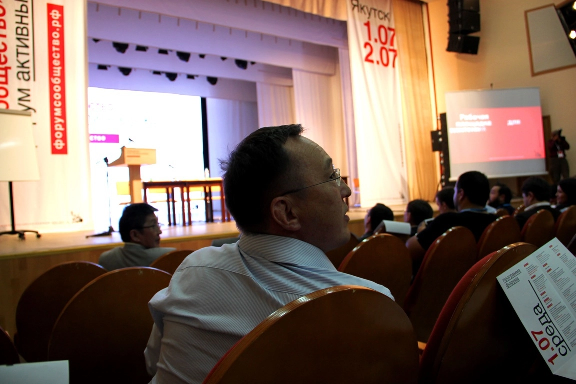 Затем спикер спровоцировал уже ставшую стандартной для каждого из этапов форума процедуру — знакомство каждого с каждым. «Мы ведь для того здесь собрались, чтобы наладить горизонтальные связи, ну, а встать, повернуться к соседу, представиться и рассказать о своей деятельности — самый простой способ». И только после этого Лев Гордон вышел к собравшимся и рассказал о целях и задачах форума, ну, и пригласил, наконец, на сцену приглашенных экспертов и прибывших в столицу Якутии членов Общественной палаты РФ.