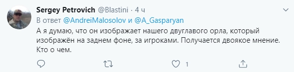 На картинке изображены футболисты Артем Дзюба, Федор Смолов и Федор Кудряшов. И все бы ничего, но на фото Смолов показывает жест в виде орла. Журналист и общественный деятель Андрей Малосолов отметил, что данный жест является символом албанского орла. Этот жест означает для сербов геноцид в Косово.