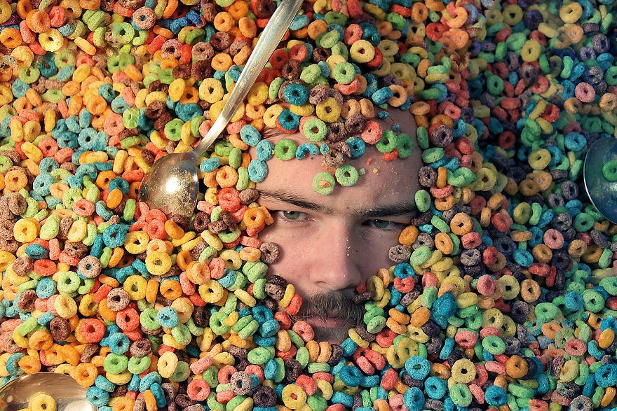 Канадский фотограф из Торонто Эрик Марцинковский (Erik Marcinkowski) обычно снимает моделей в различных проектах. Однако, обладая лишним весом, однажды канадец задумался о своём образе жизни и питании. Результатом стало похудение почти на 30 килограммов и серия причудливых автопортретов под названием «DiscomfortFood» — «Дискомфортная еда».