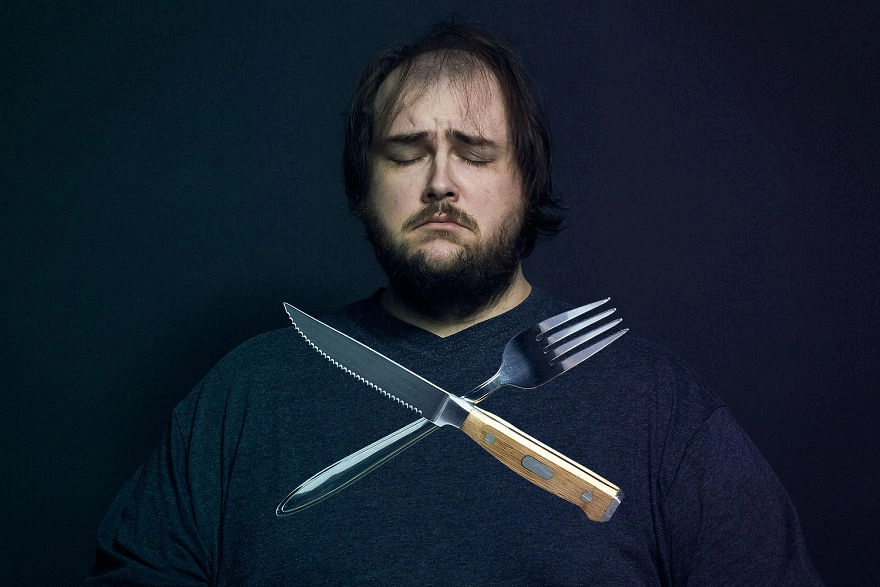 Фотограф похудел на 30 кг и сделал причудливые автопортреты с едой