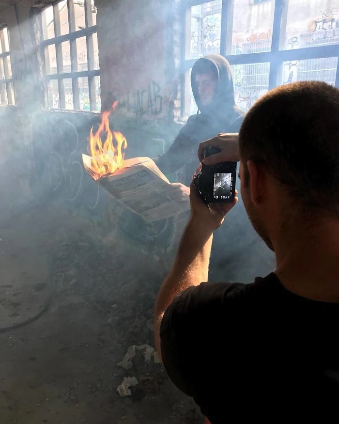 Честно говоря, я больше всего впечатлен парнем, готовым держать горящую газету.