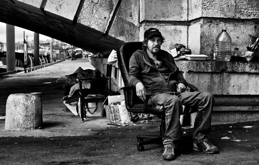 Давид Тесинский (David Tesinsky) живёт в Праге и называет себя независимым фотографом. Он специализируется на репортажной съёмке городской культуры и уличных историй. Недавно Давид побывал в Париже, где сделал серию шокирующих фотографий изнанки города, которая скрывается за блеском центральных улиц и великолепием Эйфелевой башни. Эти документальные снимки о бедах социума, беженцах и личном горе людей показывают неприглядную сторону одного из самых красивых и романтичных городов мира.