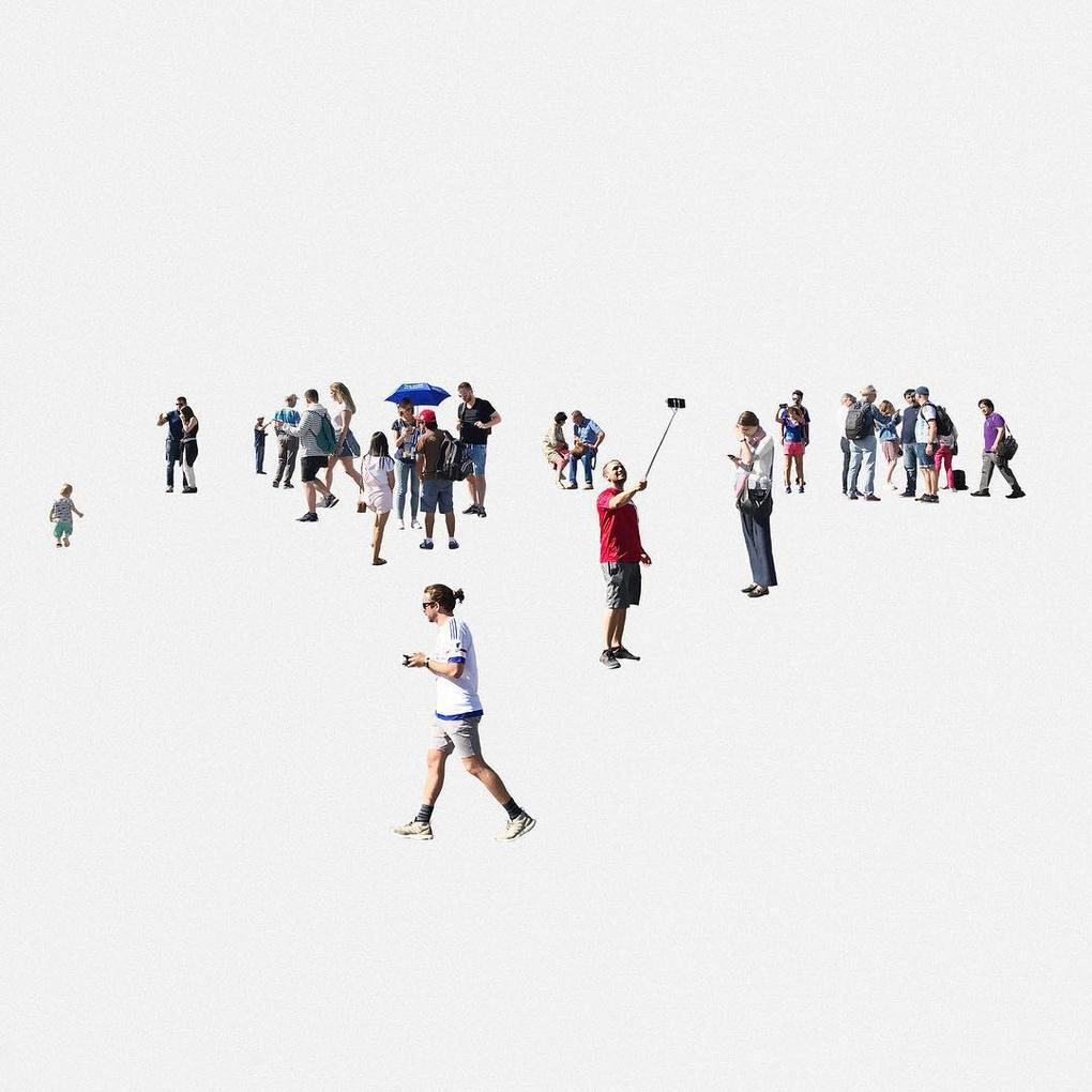 Мы легко узнаём большие города по достопримечательностям. Эйфелева башня — Париж, Кремль — Москва, Мачу-Пикчу — Перу, Великая Китайская стена — Пекин, Саграда Фамилия — Барселона, Статуя Христа-Искупителя — Рио-де-Жанейро, Спас на Крови — Санкт-Петербург и так далее. А что если из городов убрать все здания, улицы, инфраструктуру и оставить только людей? Получатся кадры из фантастического фильма. Эту странную и любопытную идею воплотил в жизнь питерский архитектор Никита Петров и создал фотографии Петербурга, на которых есть люди, но нет самого Петербурга. Получилось необычно, минималистично и немного постапокалиптично.
