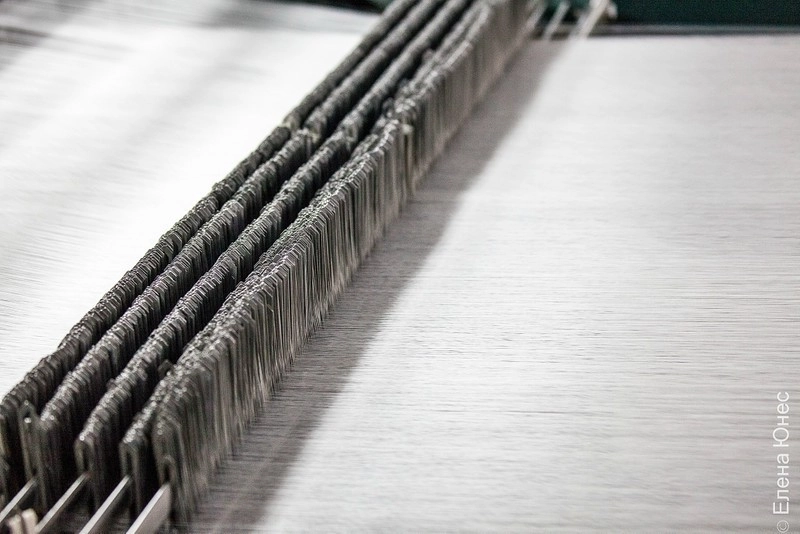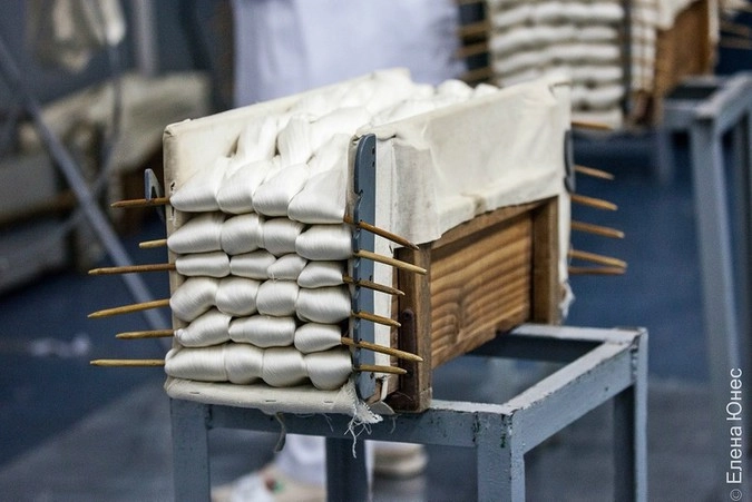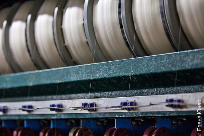 Затем бобины с шелковыми нитями снова промываются горячей водой и снова перематываются. Во время перемотки проверяется равномерность толщины нити, а также наличие обрывов.
