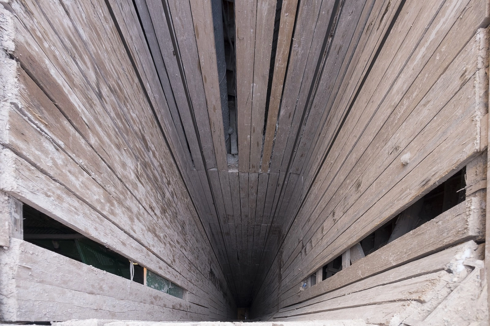 А вот по этому тоннелю будет двигаться вверх эскалатор.