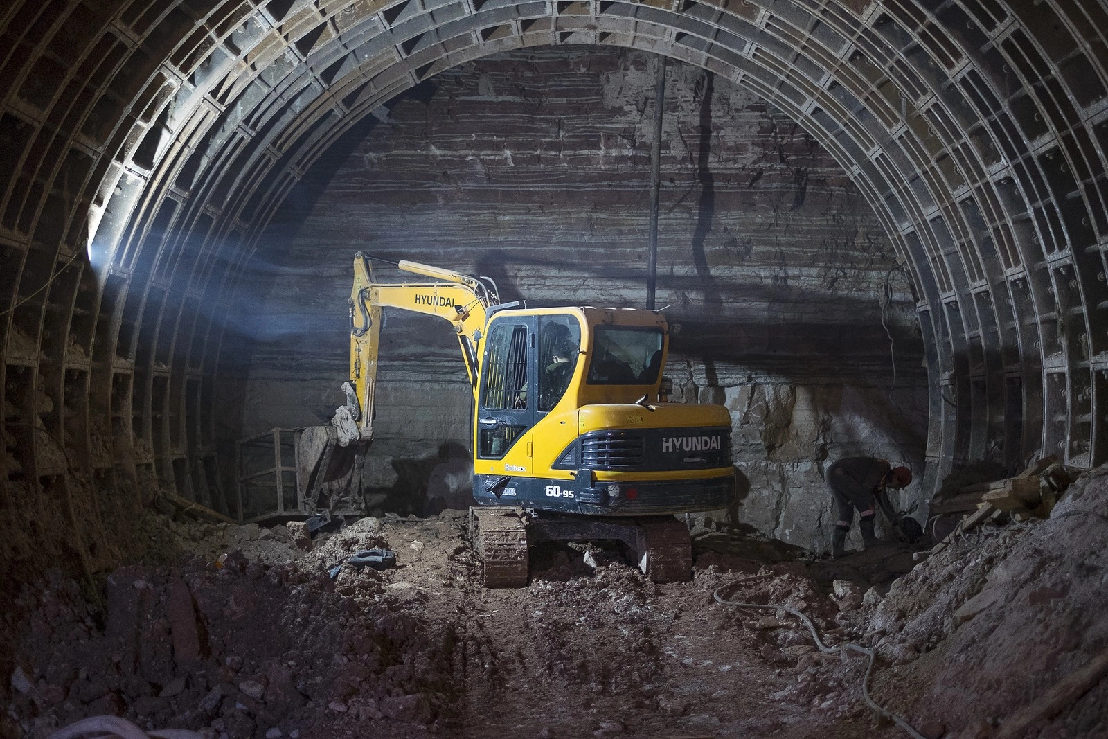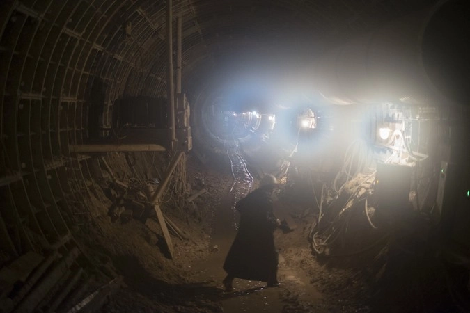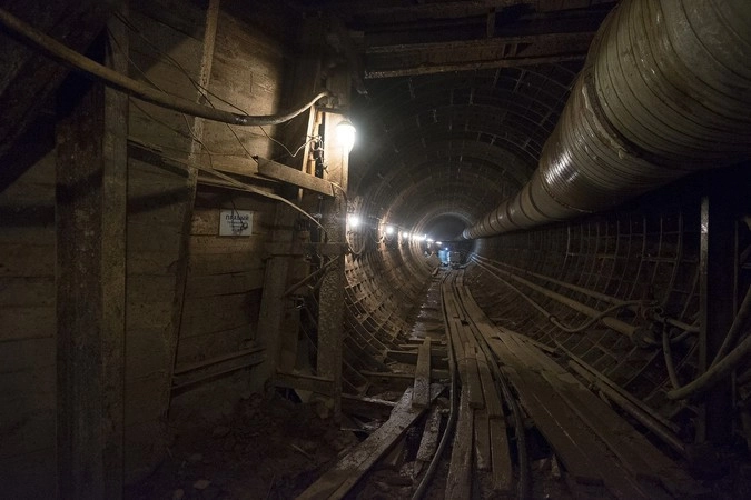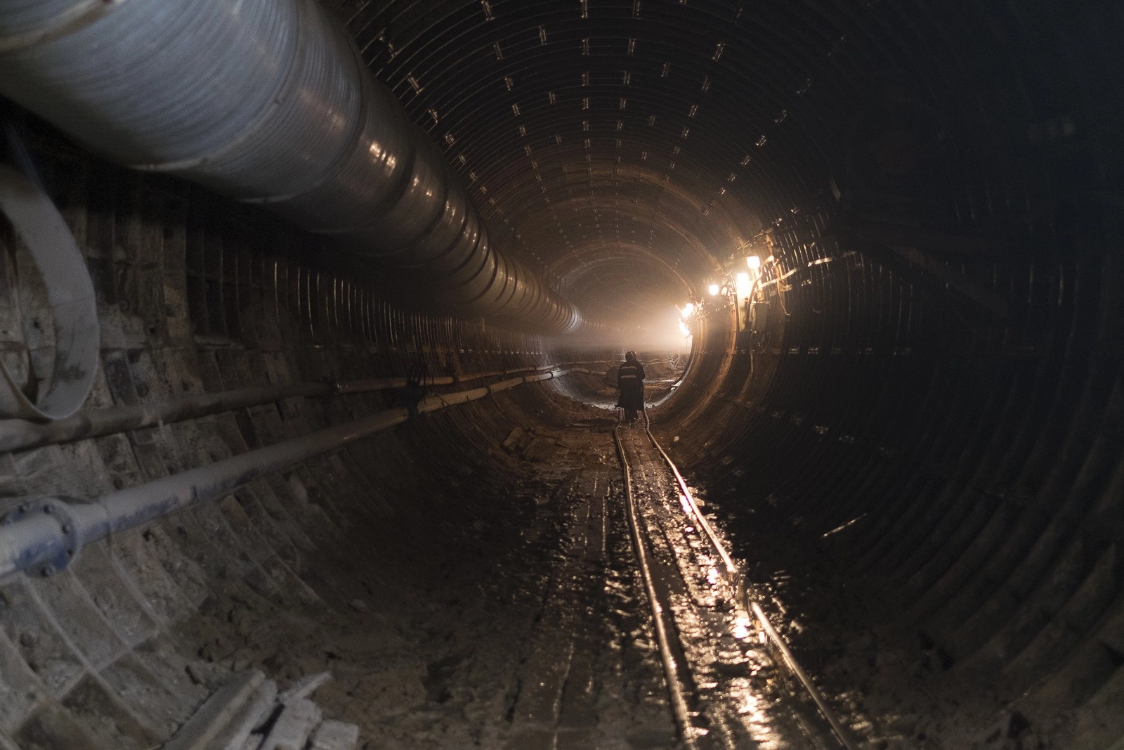 А в уже готовом тоннеле проводятся работы по гидроизоляции.