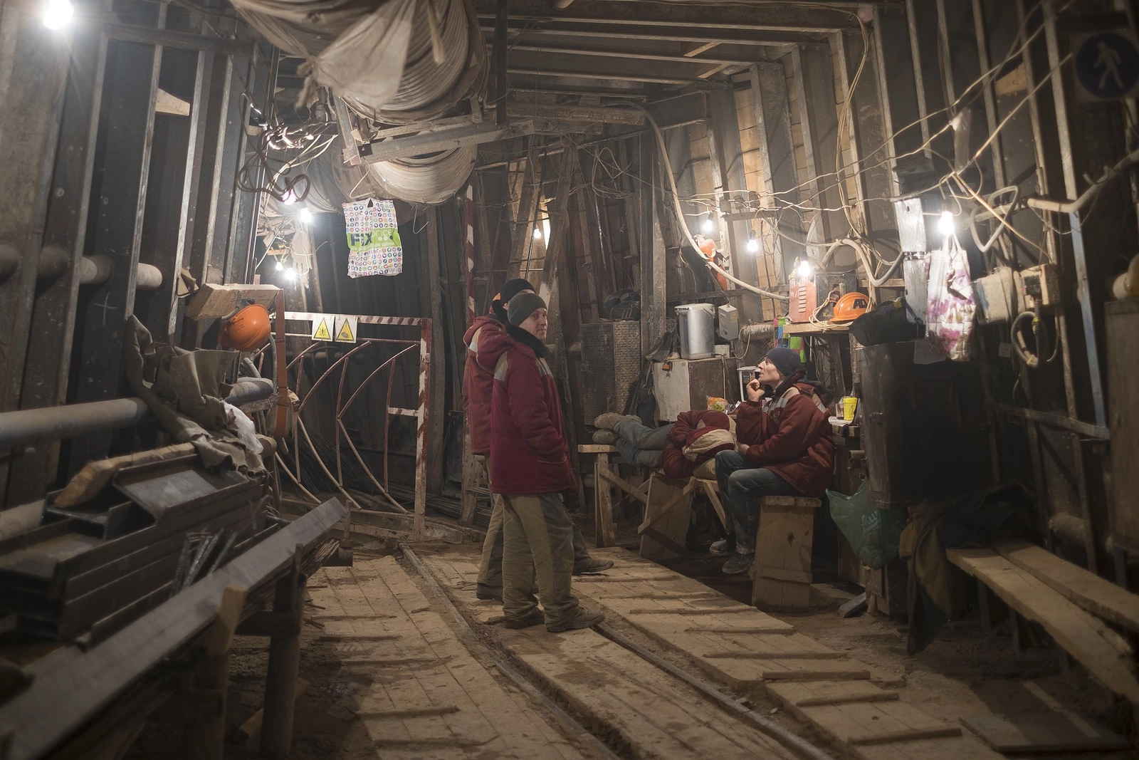 Отдыхают и обедают рабочие тут же, прямо в шахте в специально отведенном месте.