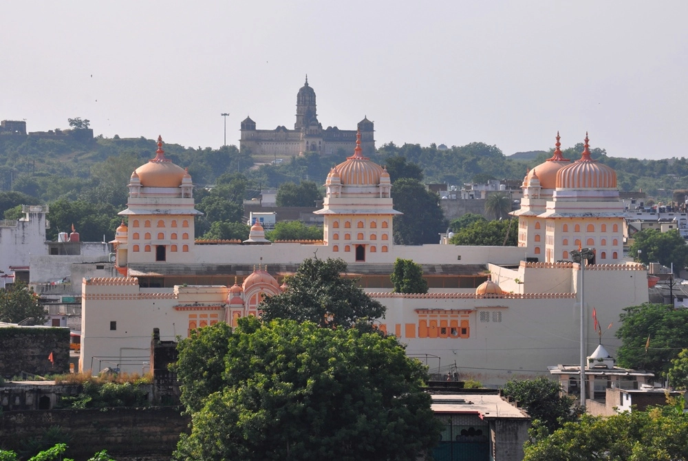 Осмотрев дворцы Радж-Махал и Джахангири-Махал, переместимся в противоположную часть Орчхи, где на холме стоит прекрасный индуистский храм Лакшми-Нараян.