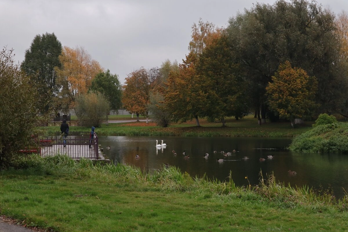 Главный парк. Погода тоже тут такая мягкая. Полупасмурная, чуть-чуть дождливая. Не знаю, но почему-то в этих местах мне такая погода всё время попадается в этих местах в любое время года. Когда в России уже зима, тут такая мягкая осень.