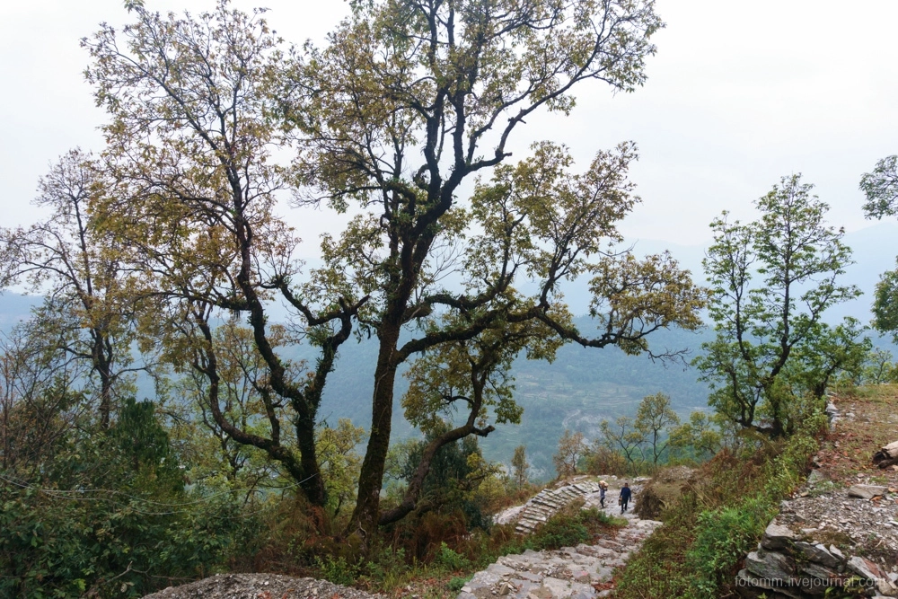 Поднимаюсь все выше и вижу сверху долину и дорогу в сторону Покхары, по которой приехал.