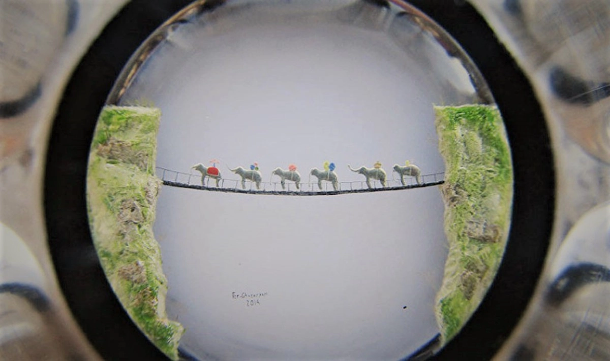 Представьте себе игольное ушко, куда мы вдеваем нитку. Так вот, внутри этого ушка знаменитый мастер Эдуард Тер-Казарян (1923−2012) выстраивал верблюжьи караваны, строил замки и дворцы, создавал армянские хачкары с резьбой, создавал скрипки размером около миллиметра со струнами из человеческого волоса.