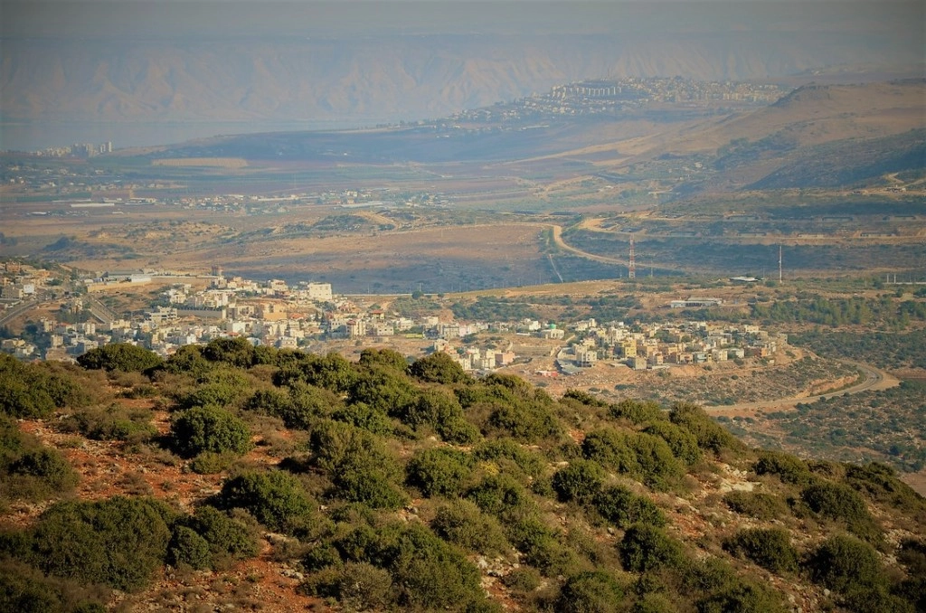 Если присмотреться вдаль, то можно разглядеть озеро Кинерет (Тибериадское) и горы вдали это Голанские высоты, захваченные Израилем в 1967 году у Сирии в ходе «Шестидневной войны». А справа вдали виднеется крупный курортный город Тверия, что на берегу озера —